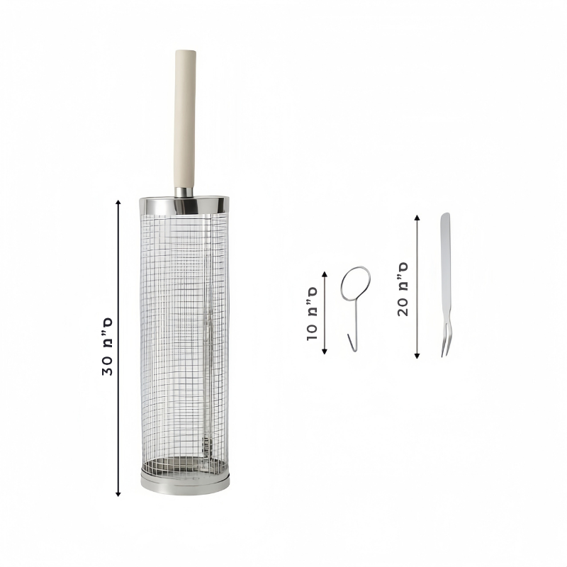 - 3 סלסלות גריל נירוסטה (קוטר 10 ס"מ, אורך 30 ס"מ)
